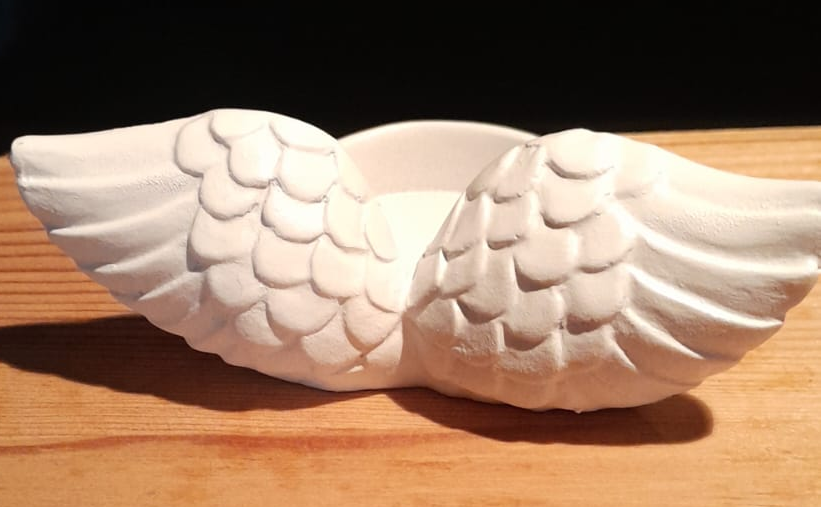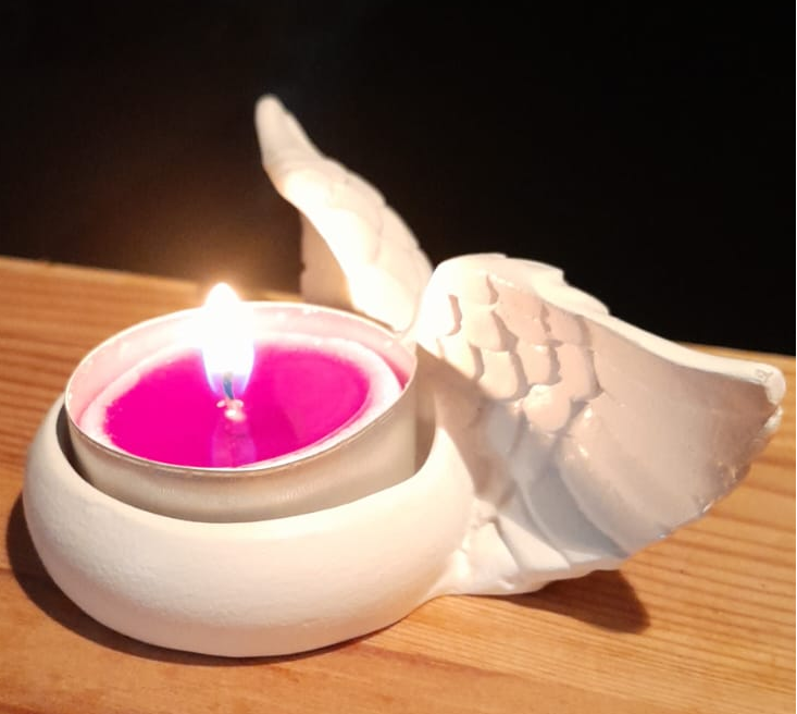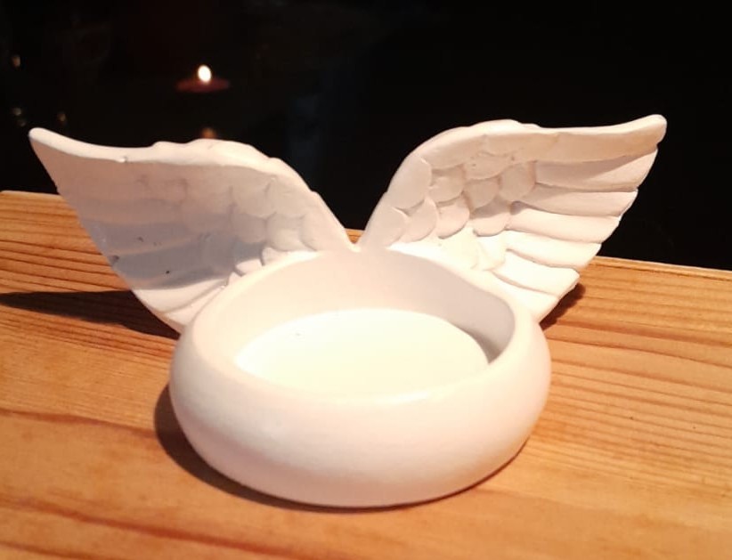 Deux ailes d'ange où vous pourrez faire bruler votre bougie. Parfait pour un centre de table ou un Autel. Mais il trouvera sa place également en déco dans votre intérieur