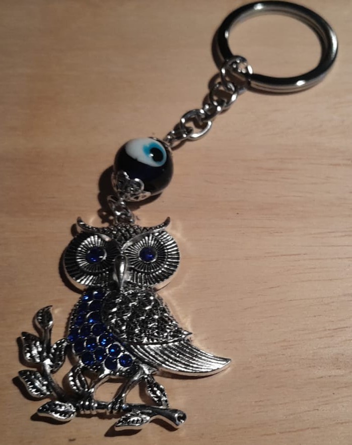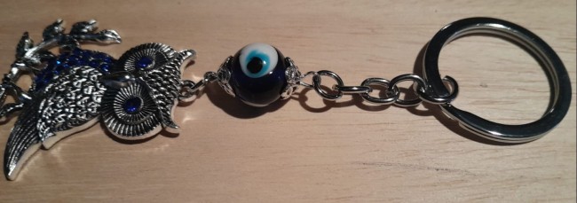 Magnifique porte-clé chouette pourvu d'un oeil protecteur