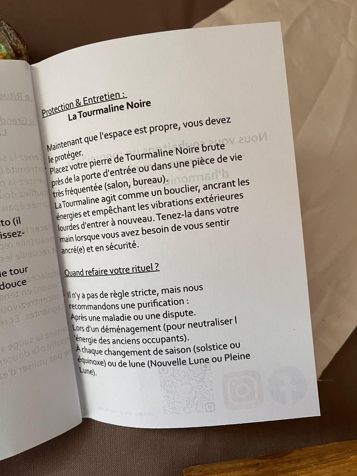"Ce kit est le fondement de toute pratique spirituelle. Commencez toujours par purifier votre espace avant de travailler sur vous-même ou sur vos outils. La combinaison Tourmaline/Fumigation vous garantit protection et clarté immédiates."