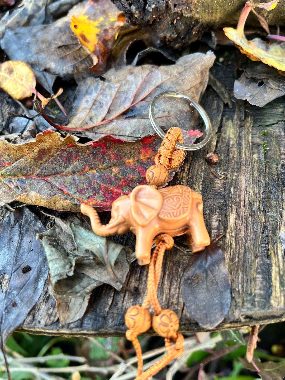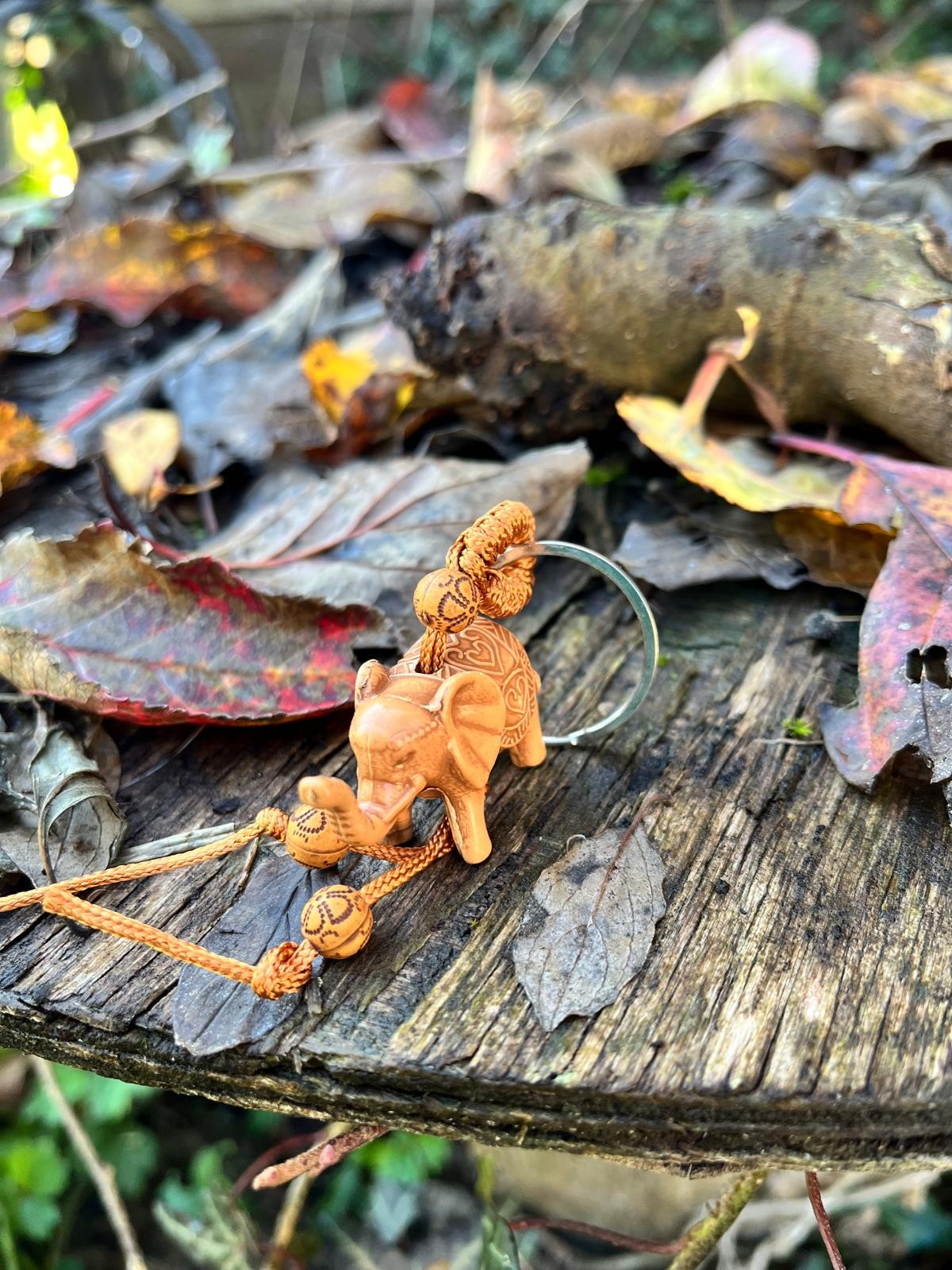 Porte-Clés Éléphant Sculpté — Chance, Sagesse & Ancrage (Résine Effet Bois)
