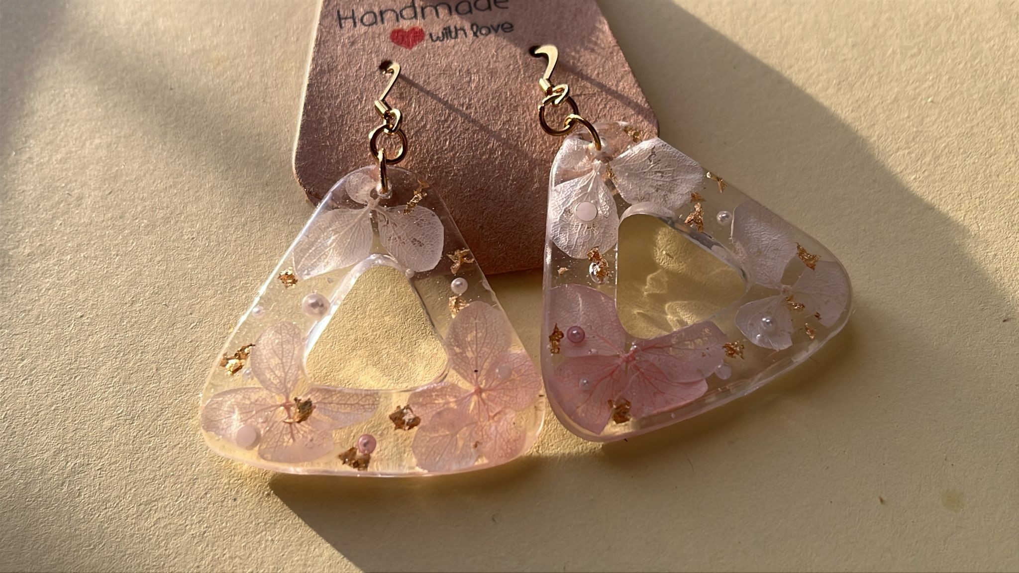 Le Visuel : La transparence totale de la résine permet d'admirer chaque détail des pétales des perles et des feuilles d'or, comme un petit jardin secret.